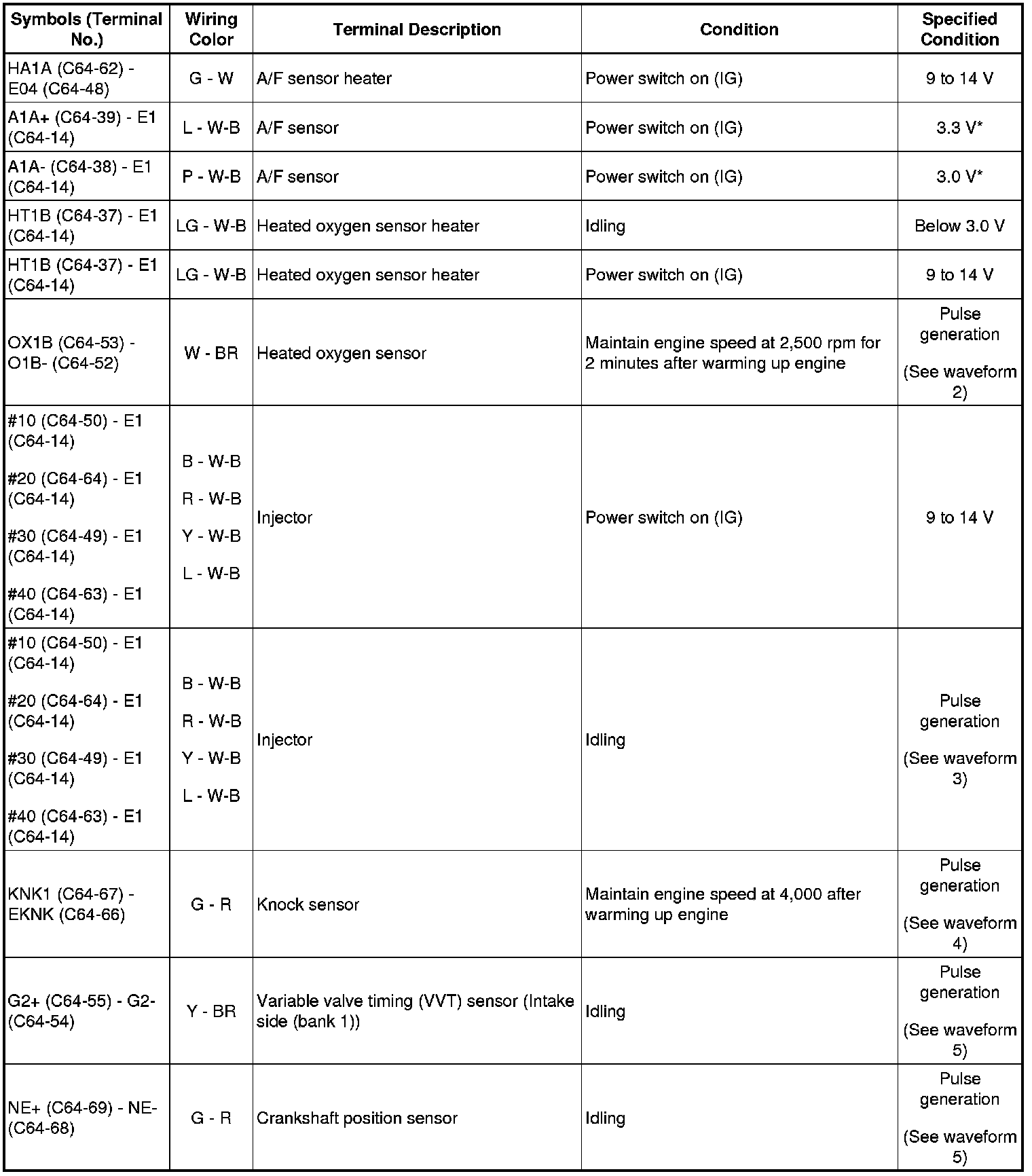 HINT: If the waveform is not similar to the illustration, check the waveform again after idling for 10 minutes or more.