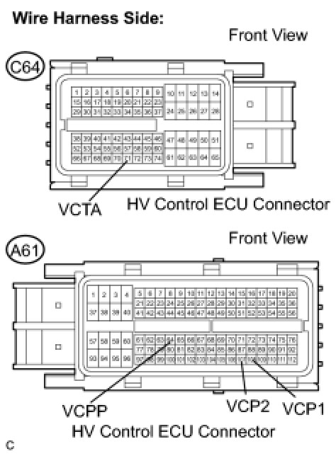 (e) Disconnect the A61 and C64 hybrid vehicle control ECU connectors.