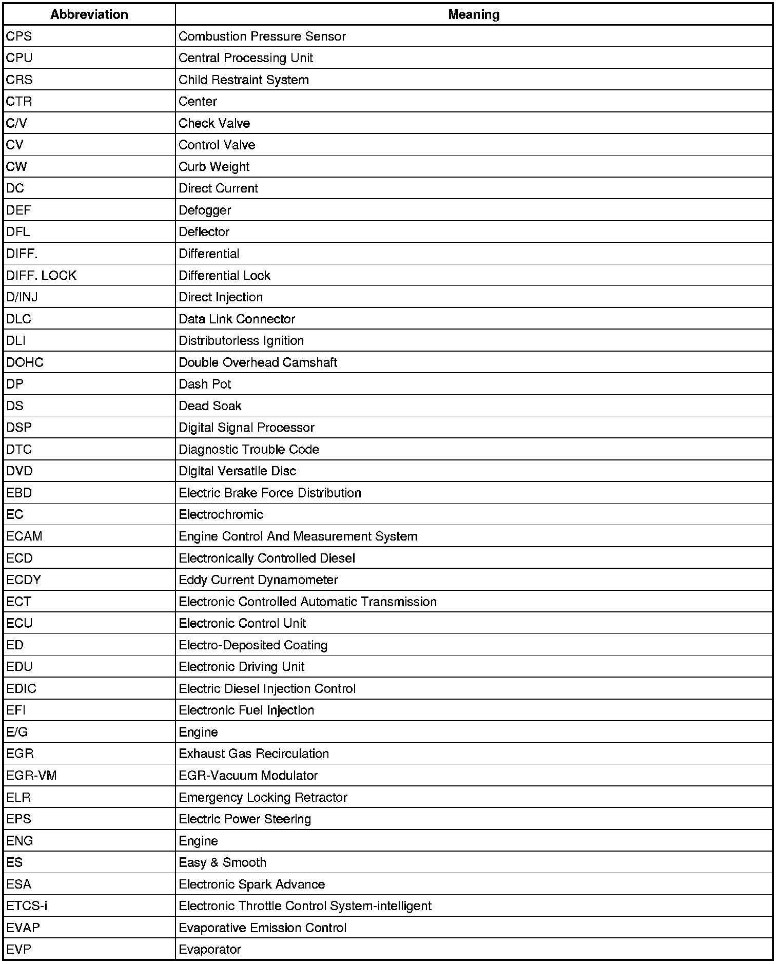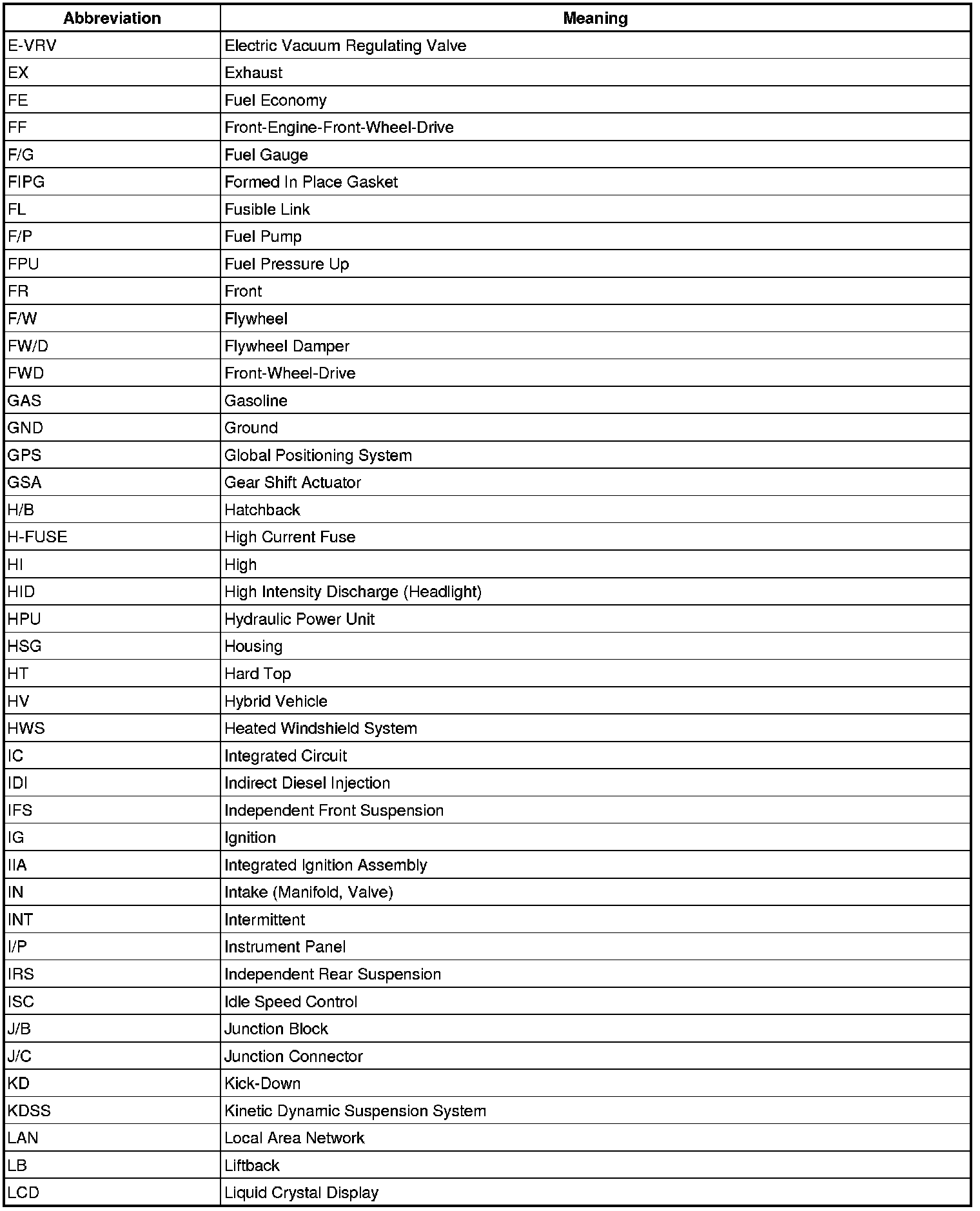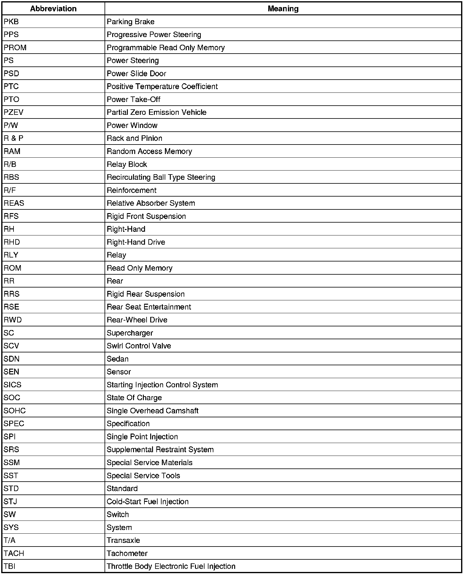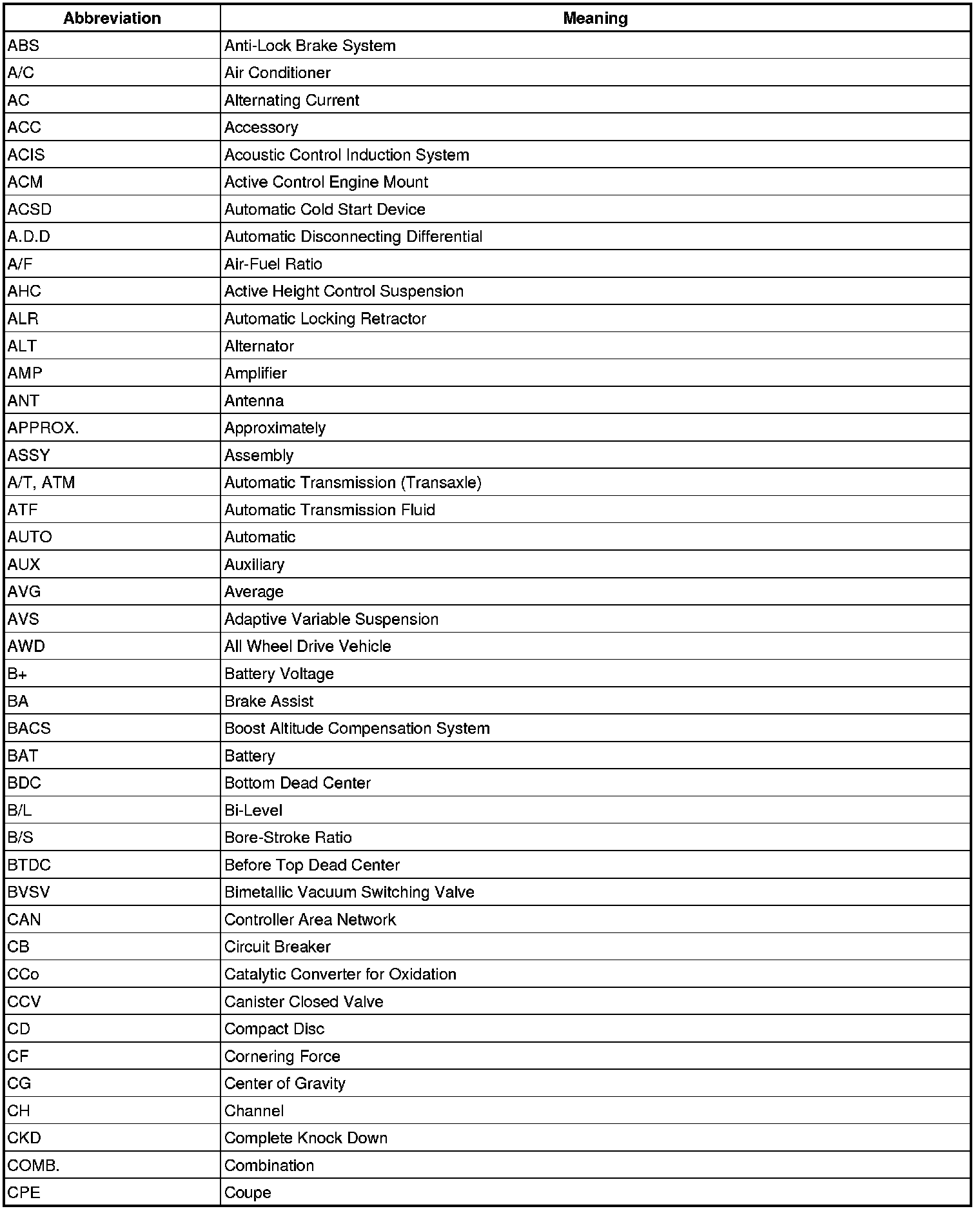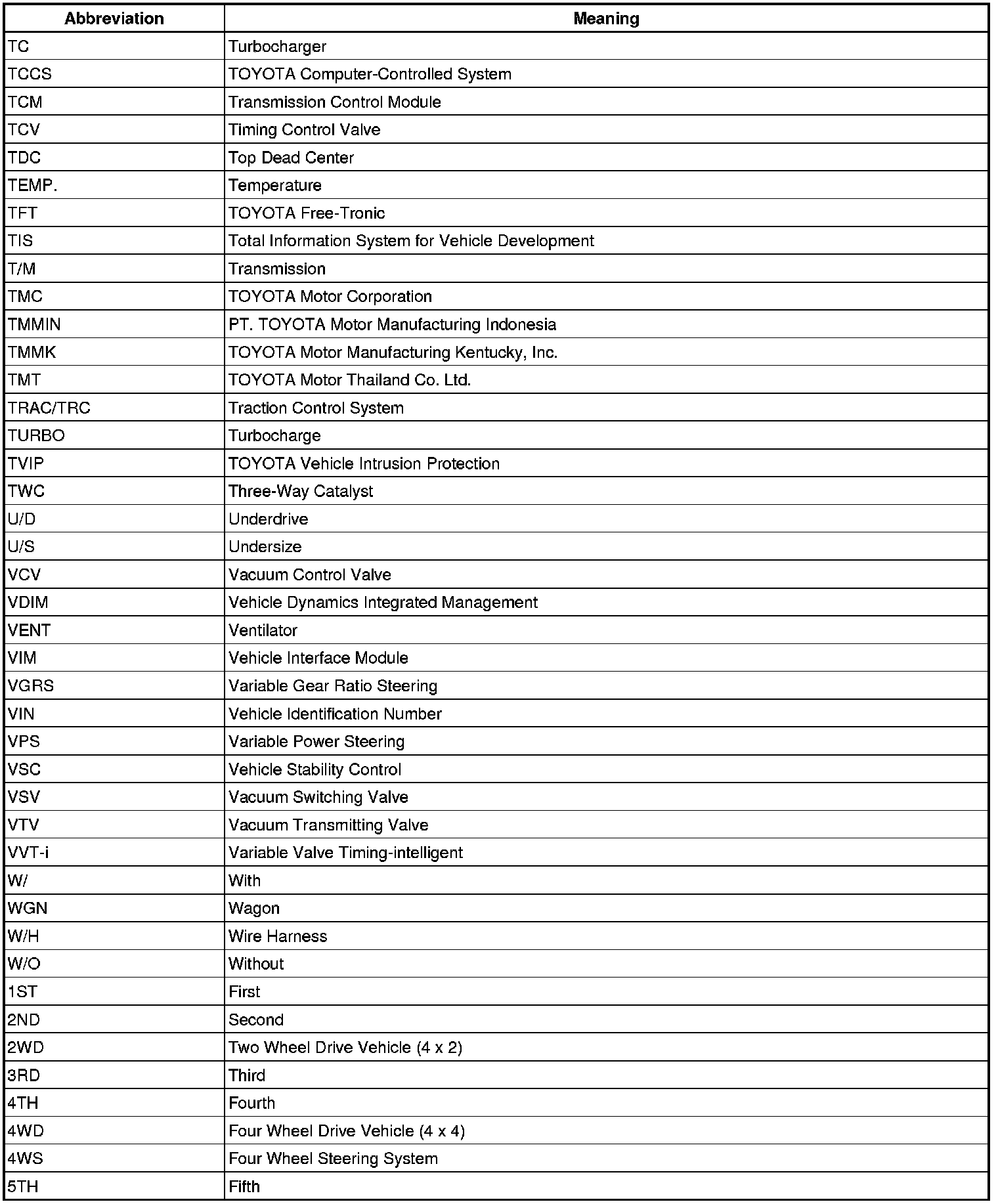 Terms - Abbreviations Used In Service Procedures