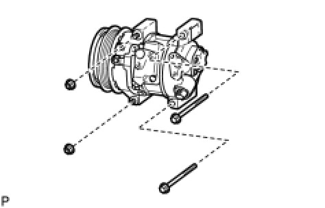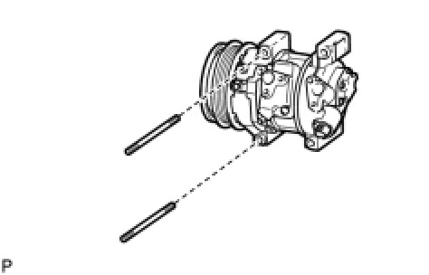 (c) Using a "TORX" socket wrench (E8), remove the 2 stud bolts and compressor with pulley assembly.