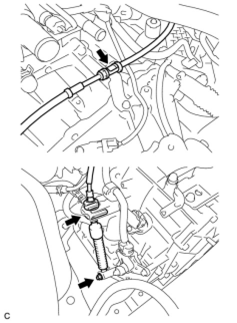 (a) Remove the 2 clips and disconnect the 2 cables from the transaxle.