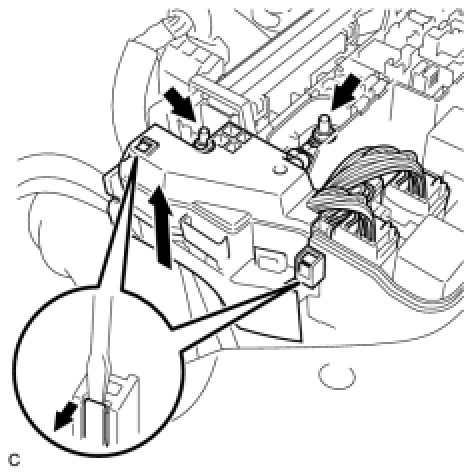 (c) Remove the 3 connectors and 2 clamps from the engine room junction block and disconnect the wire harness.