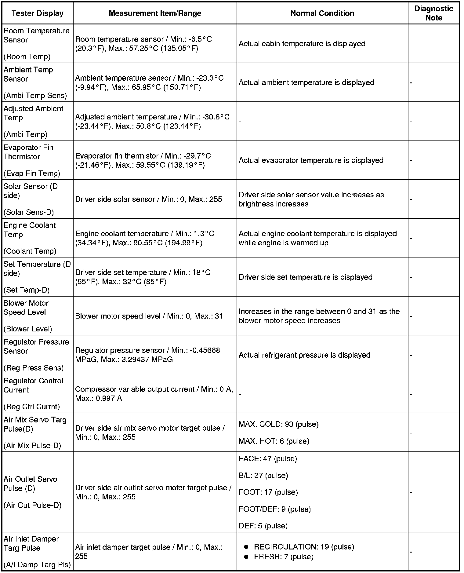 HEATING / AIR CONDITIONING: AIR CONDITIONING SYSTEM (for Automatic Air Conditioning System): DATA LIST / ACTIVE TEST