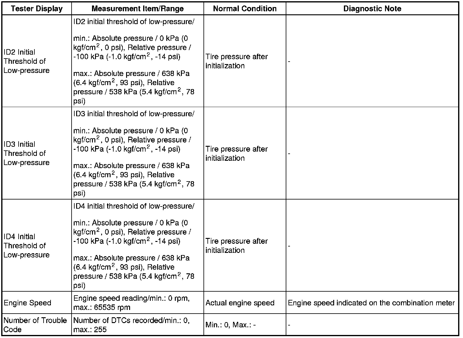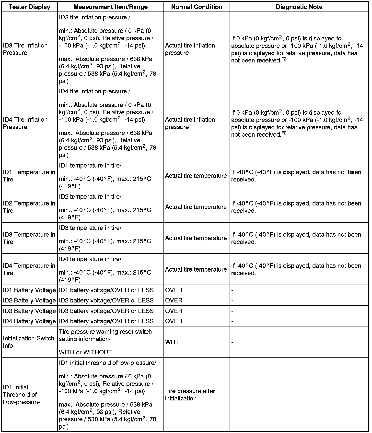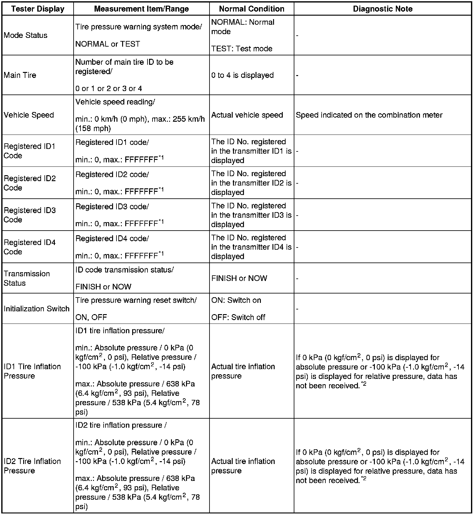 TIRE PRESSURE MONITORING: TIRE PRESSURE WARNING SYSTEM: DATA LIST / ACTIVE TEST
