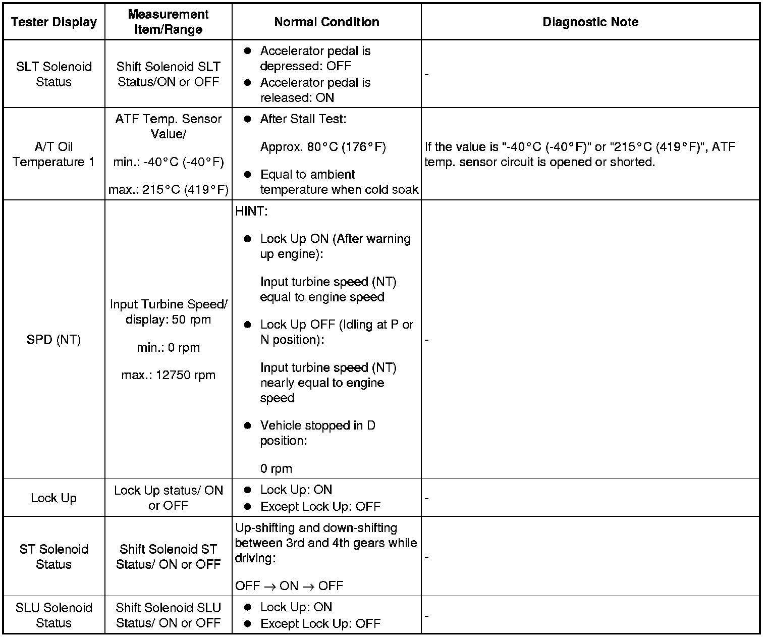 *: "Activate the Solenoid (SLT)" in the Active Test is performed to check the line pressure changes by connecting the SST to the automatic transaxle, which is used in the HYDRAULIC TEST Hydraulic Test as well.