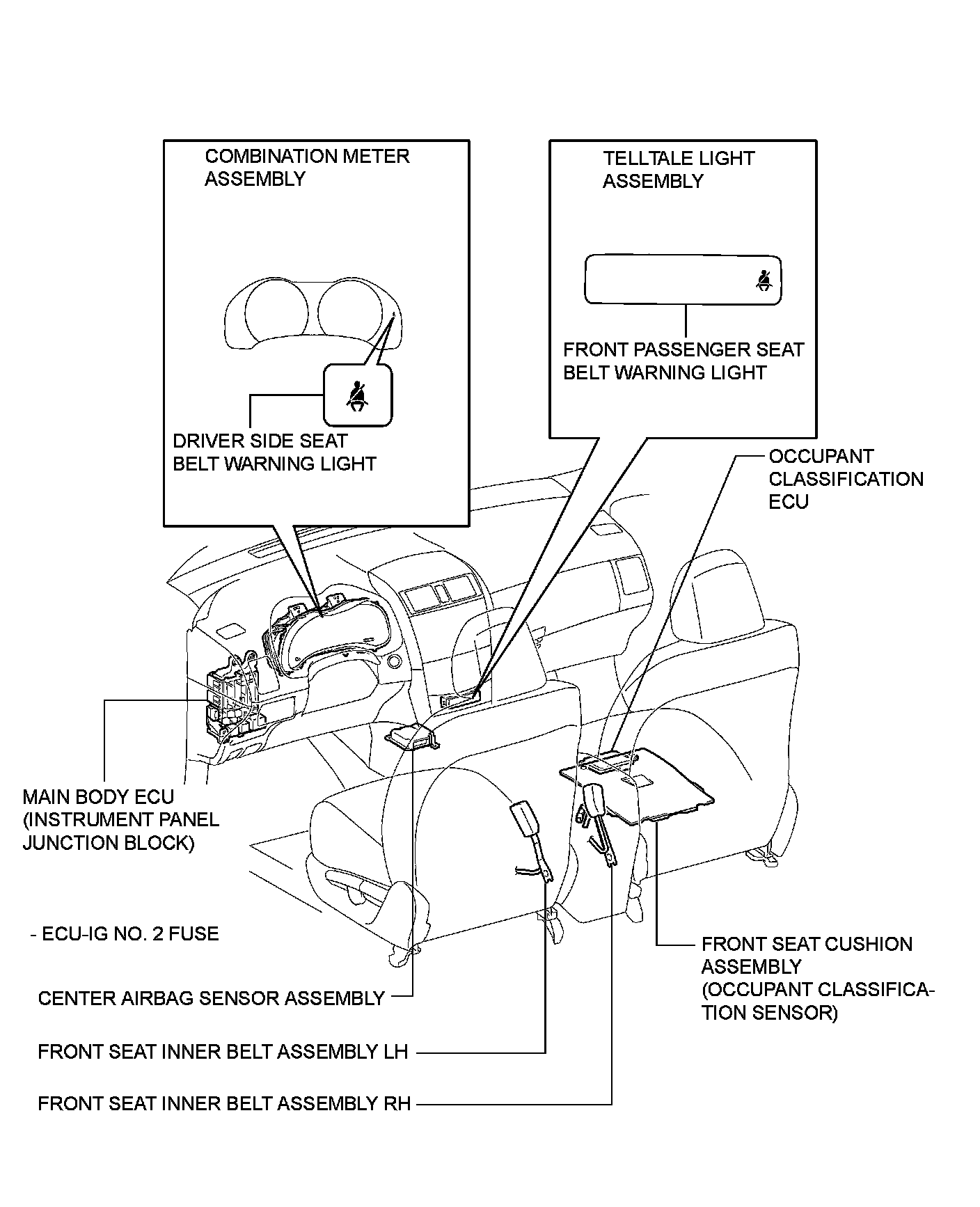 SEAT BELT: SEAT BELT WARNING SYSTEM: PARTS LOCATION
