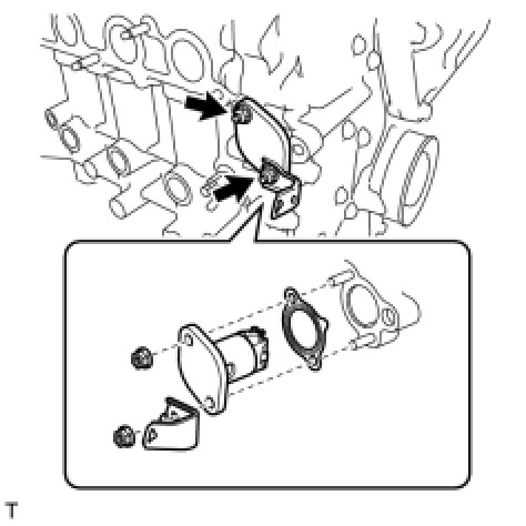 NO. 1 CHAIN TENSIONER ASSEMBLYInstall a new gasket, bracket and No. 1 chain tensioner with the 2 nuts.