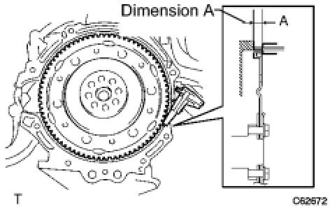 (a) Using a vernier caliper, measure dimension A between the transaxle fitting surface of the engine and the converter fitting surface of the drive plate. (#1)