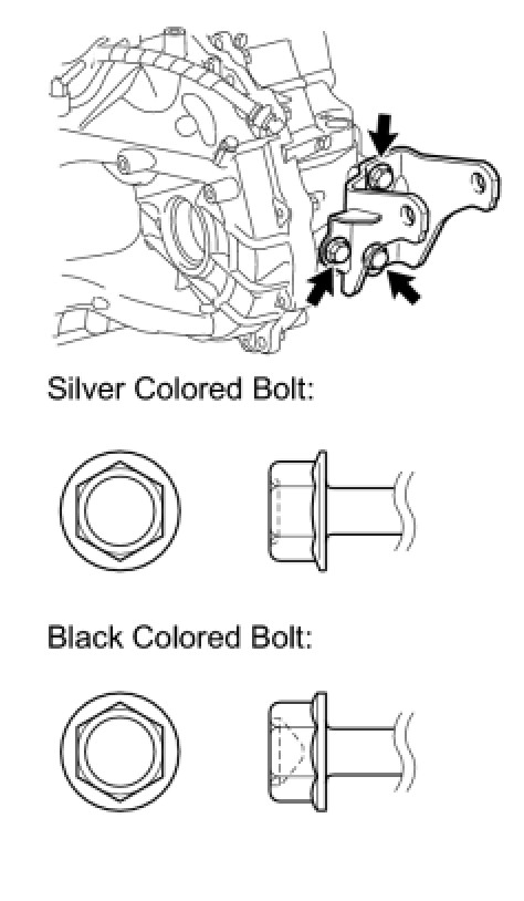 NOTE: Install the black colored bolt first, and then the silver colored 5 bolts.