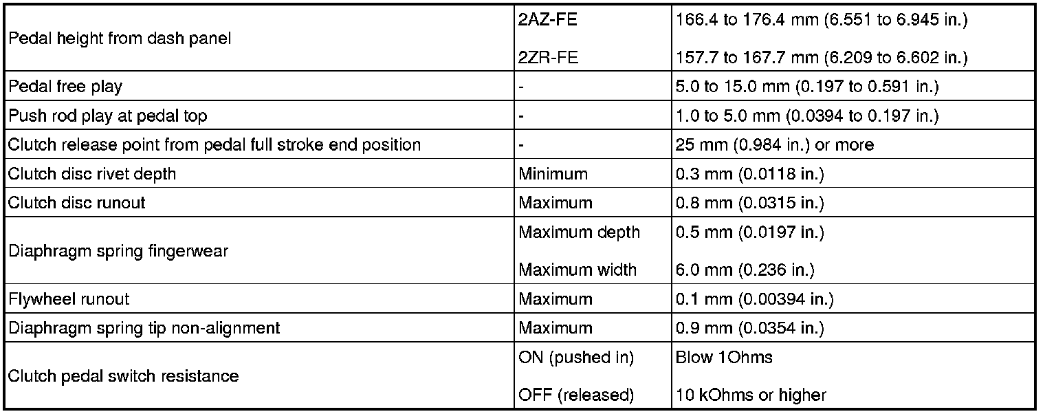 SPECIFICATIONS: CLUTCH: SERVICE DATA