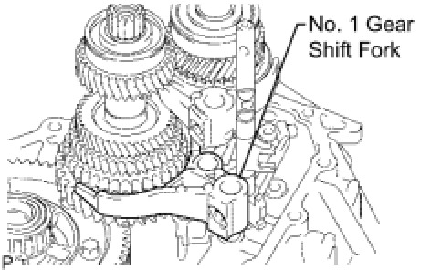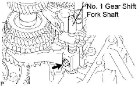 (b) Remove the shift fork set bolt and No. 1 gear shift fork shaft from the No. 1 gear shift fork.