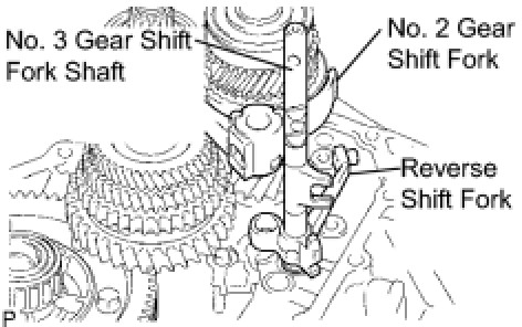 (b) Remove the No. 3 gear shift fork shaft together with the reverse shift fork and No. 2 gear shift fork from the manual transaxle case.