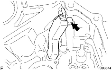 (a) Remove the 2 bolts and reverse shift arm bracket assembly from the transaxle case.