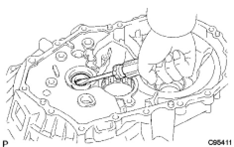 (a) Remove the reverse idler gear sub-assembly, thrust washer, and reverse idler gear shaft from the transaxle case.