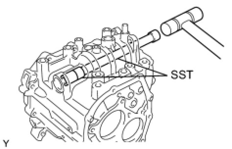 (a) Using SST and a plastic hammer, remove the shift and select lever shaft slide ball bearing.