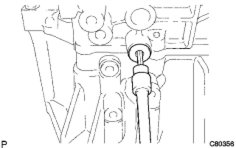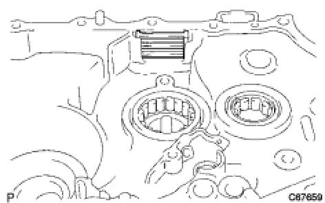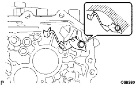 - Install the No. 2 oil receiver pipe while holding it against the manual transmission case as shown in the illustration.