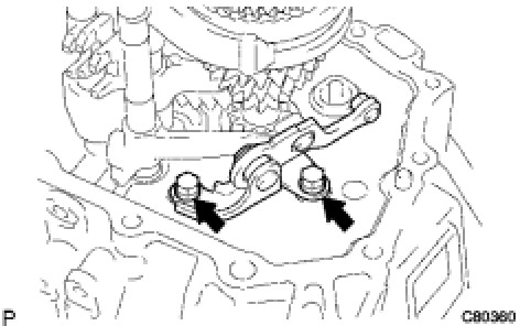 (a) Install the reverse shift arm bracket assembly onto the front transaxle case with the 2 bolts.