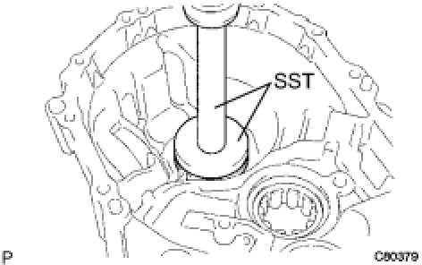 (a) Using SST and a hammer, install a new transaxle case oil seal onto the transaxle case.
