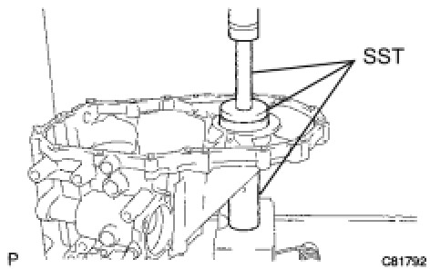 (a) Using SST and a hammer, install a new transmission case oil seal onto the manual transmission case.
