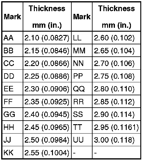 1.6 to 2.2 mm (0.0630 to 0.0866 in.)