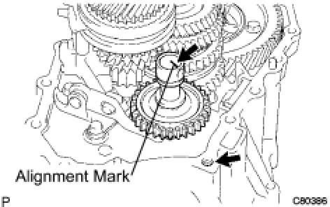 HINT: Align the mark on the reverse idler gear shaft with the bolt hole as shown in the illustration.