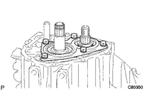 (a) Coat the sliding and rotating surfaces of the input and output shafts with gear oil and install them onto the transaxle case.