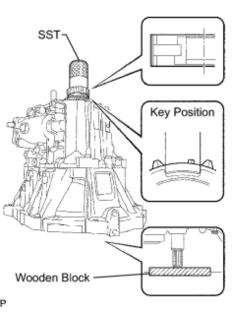 - Install the No. 3 transmission clutch hub with the No. 3 synchronizer ring key groove and the No. 3 synchromesh shifting key aligned.