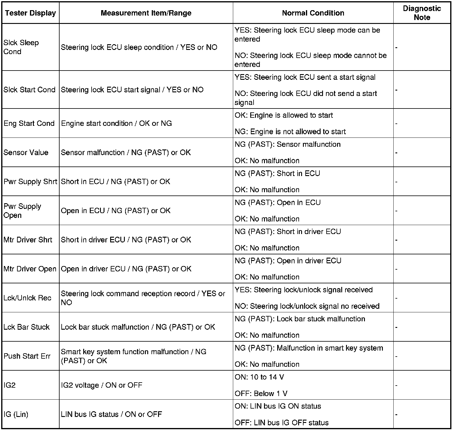 STEERING COLUMN: STEERING LOCK SYSTEM: DATA LIST / ACTIVE TEST