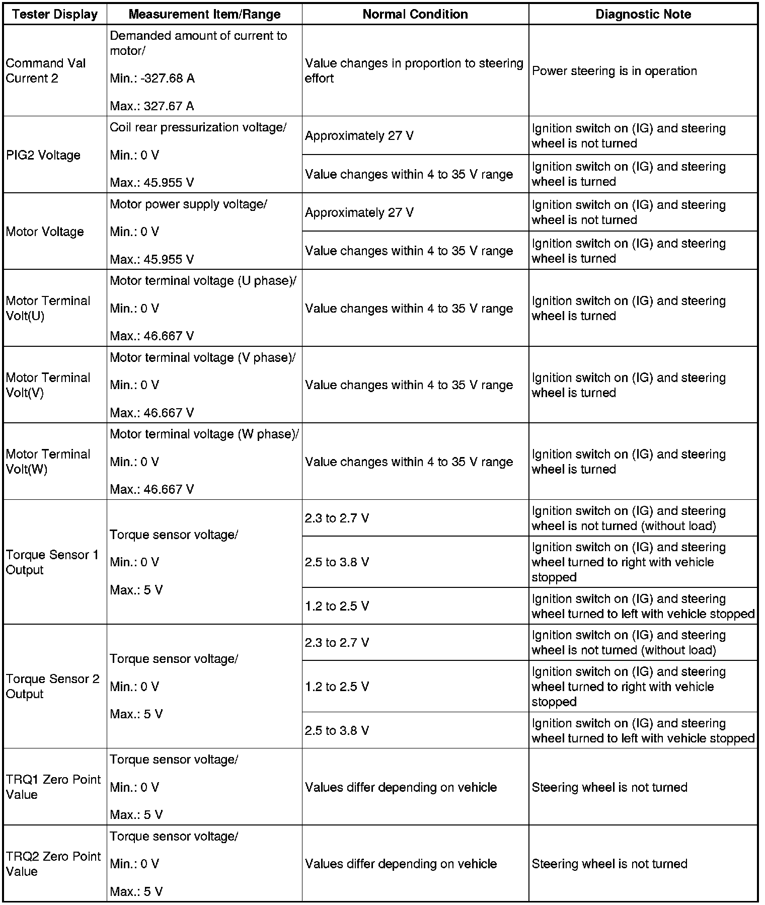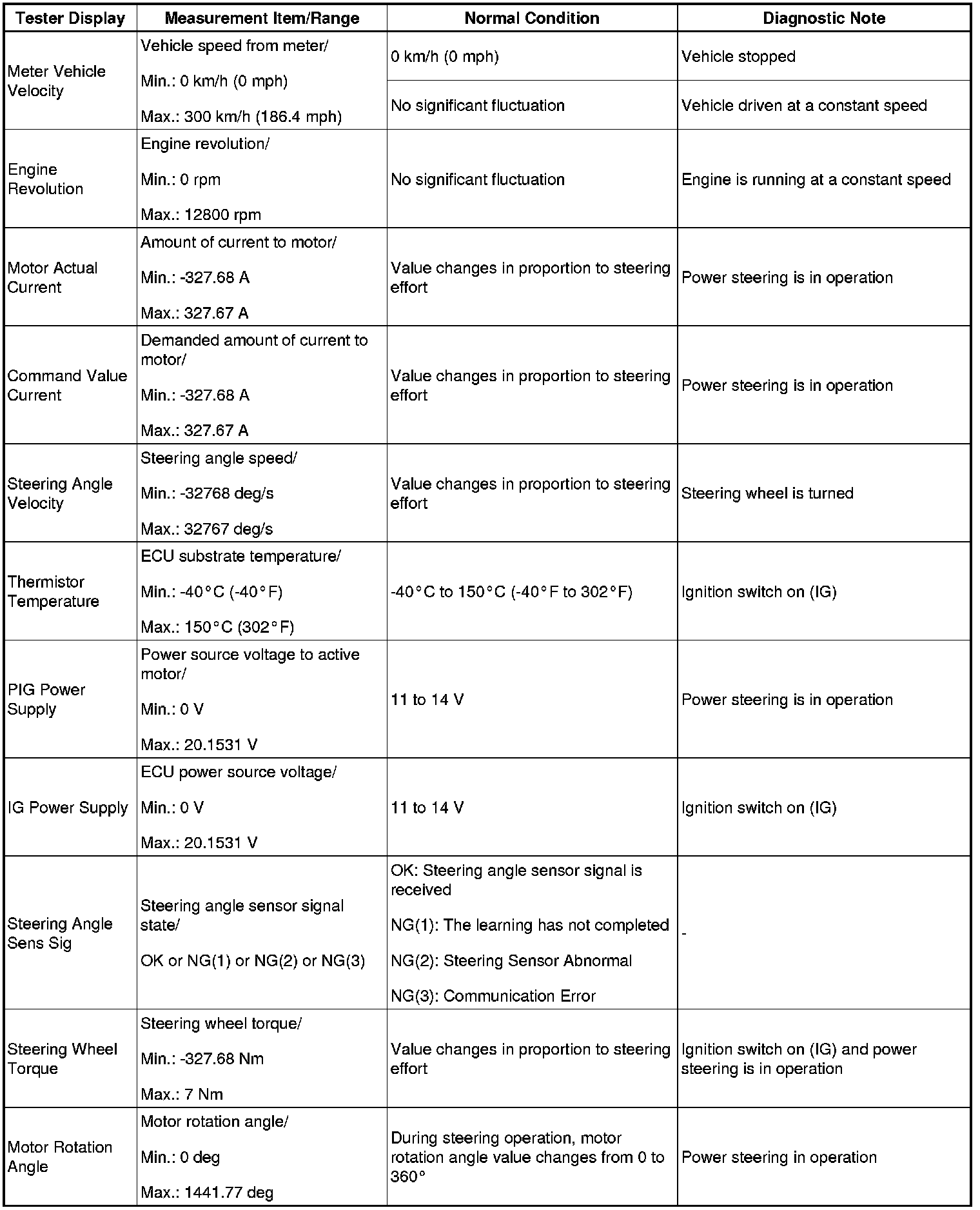 POWER ASSIST SYSTEMS: POWER STEERING SYSTEM (for 2AZ-FE): DATA LIST / ACTIVE TEST