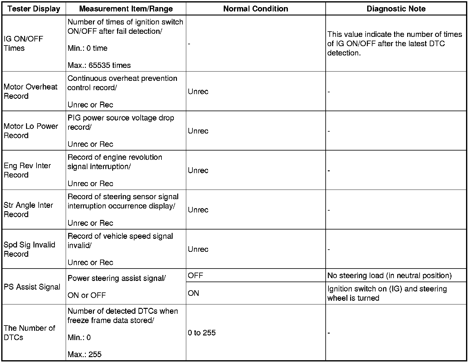 HINT: Using the Techstream to read the Data List allows the values or states of switches, sensors, actuators and other items to be read without removing any parts. This non-intrusive inspection can be very useful because intermittent conditions or signals may be discovered before parts or wiring is disturbed. Reading the Data List information early in troubleshooting is one way to save diagnostic time.