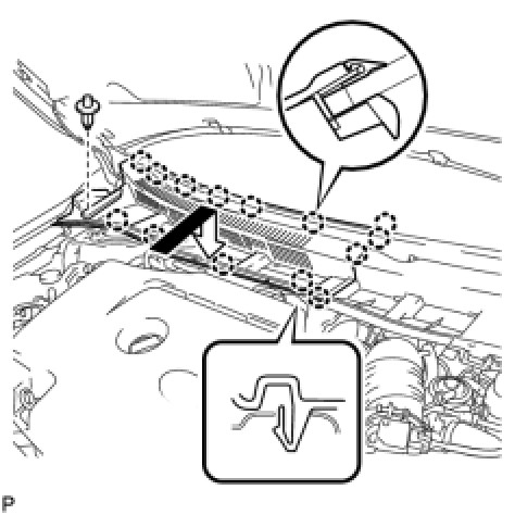 (a) Engage the 7 clips to install the hood to cowl top seal.