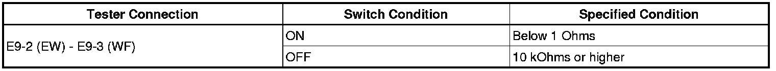 (3) Connect a voltmeter positive (+) lead to E10-3 (+1) and a negative (-) lead to terminal E9-2 (EW).