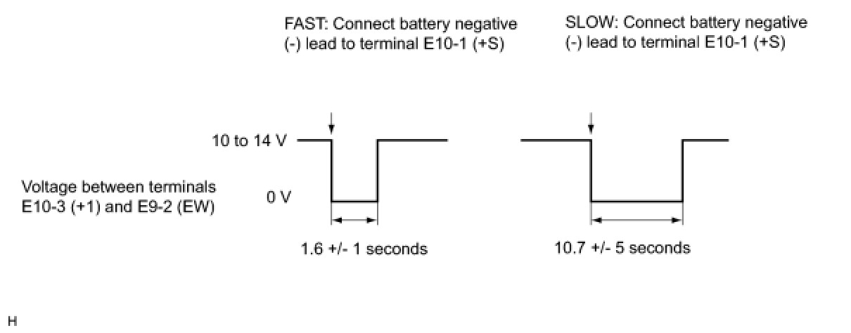 (4) Connect a battery positive (+) lead to terminal E10-1 (+S) for 5 seconds.