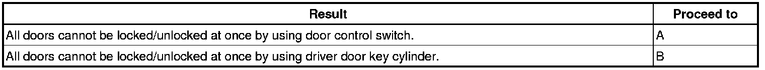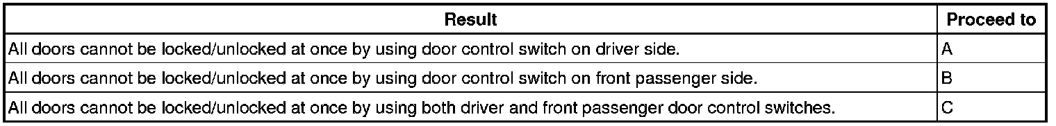 (a) Proceed to the next step according to symptom if all the doors cannot be locked/unlocked at once.