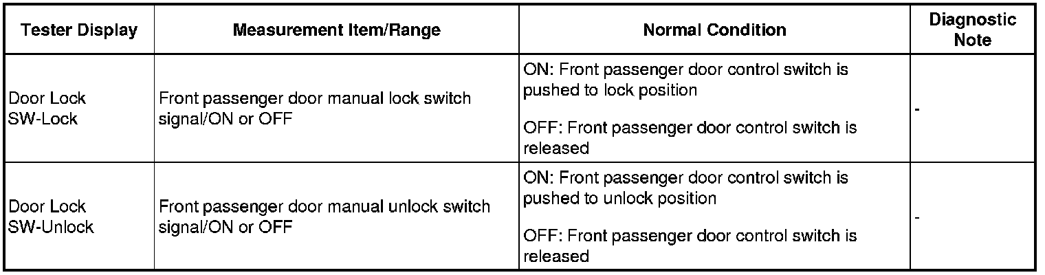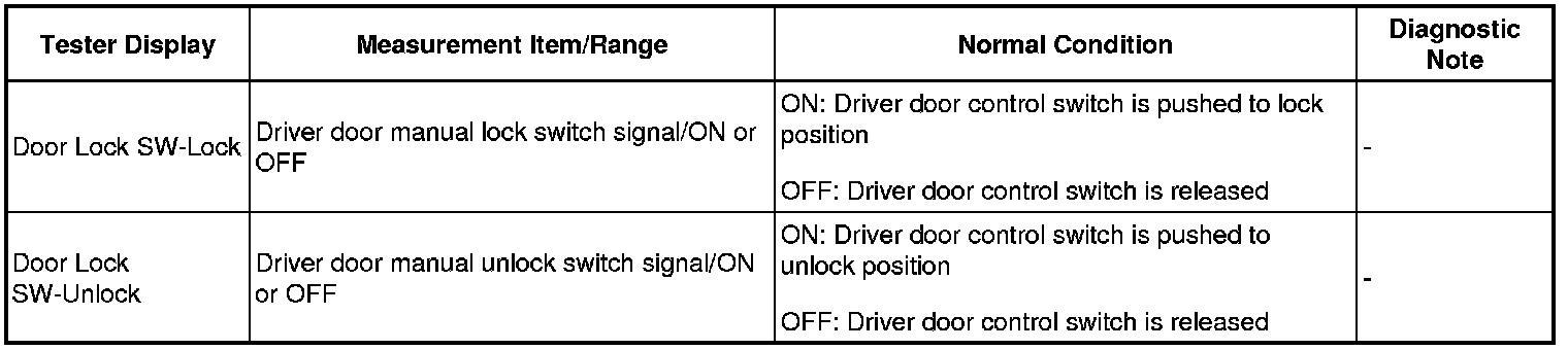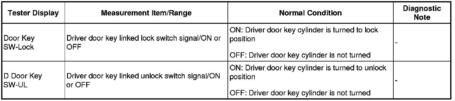 B -- READ VALUE USING TECHSTREAM (DOOR KEY LINKED LOCK AND UNLOCK SWITCH (DRIVER SIDE))