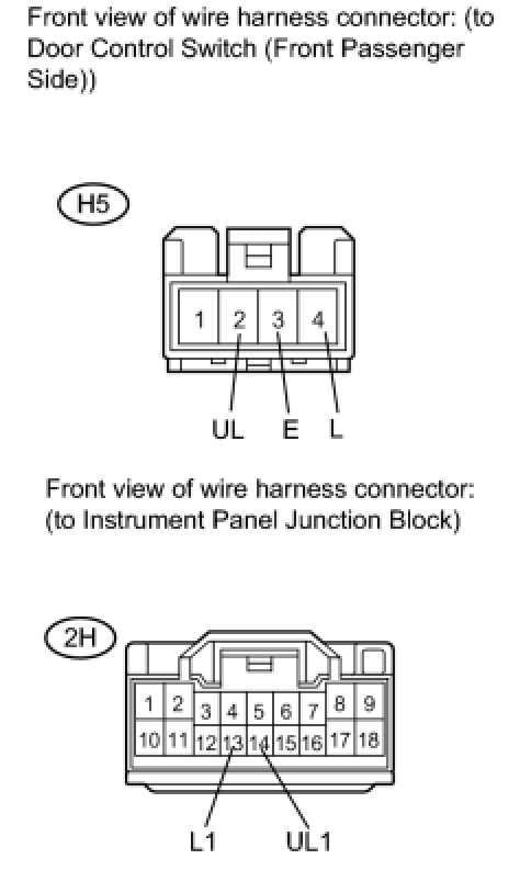 9. CHECK HARNESS AND CONNECTOR (JUNCTION BLOCK - DOOR CONTROL SWITCH (FRONT PASSENGER SIDE))