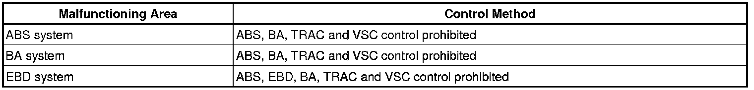 HINT: A malfunction in either the ABS or BA system will result in identical operation with ABS, BA, TRAC and VSC system control being prohibited.