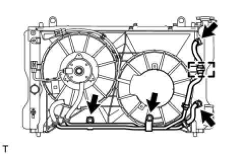 (b) Install the radiator assembly with the fan shroud.