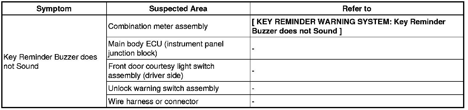 DOOR LOCK: KEY REMINDER WARNING SYSTEM: PROBLEM SYMPTOMS TABLE