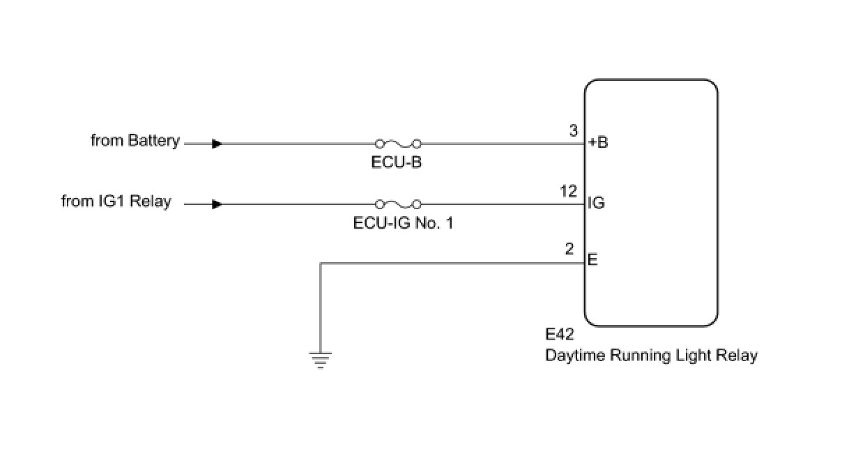 This circuit detects the state of the ignition switch, and sends it to the daytime running light relay.