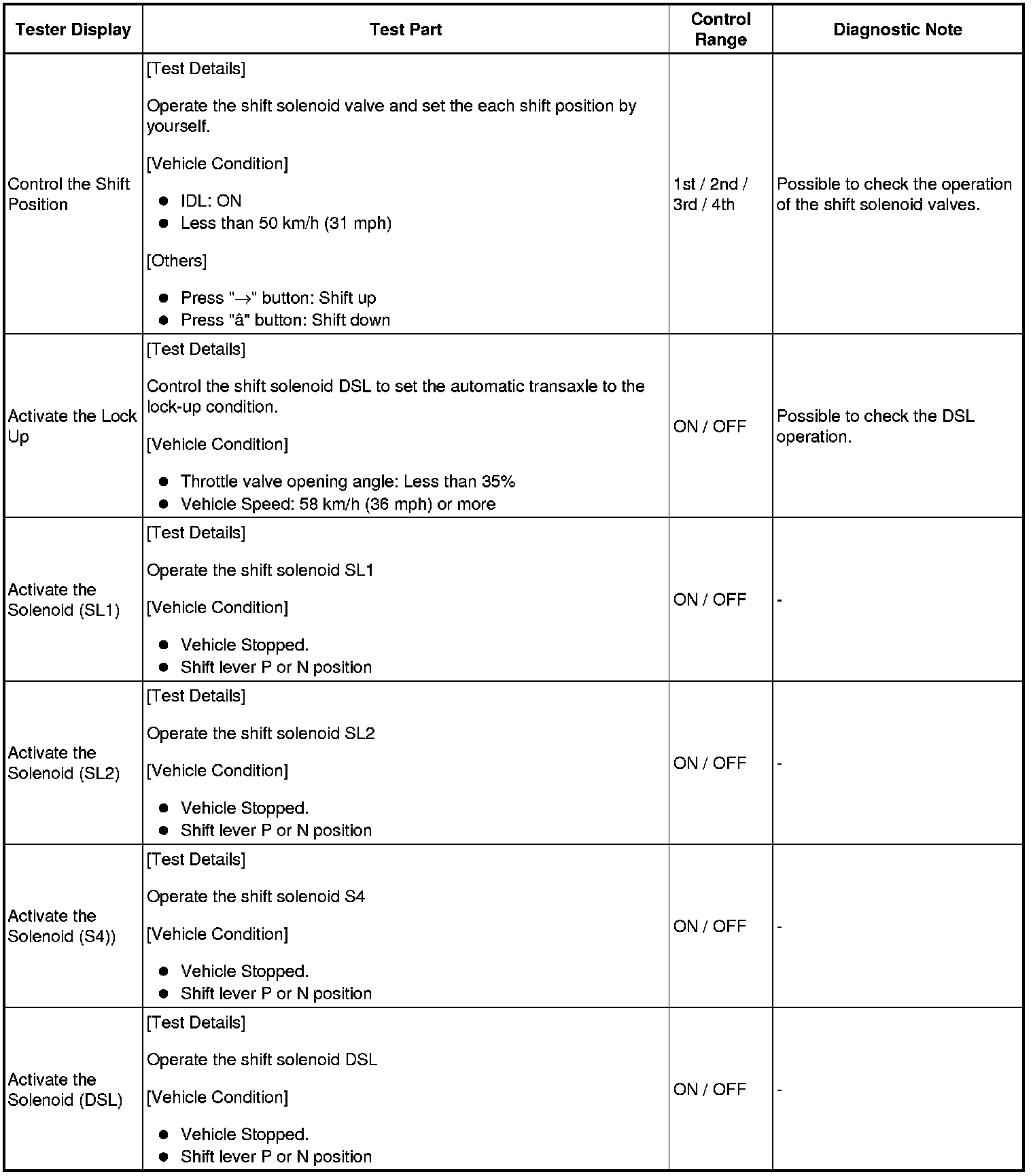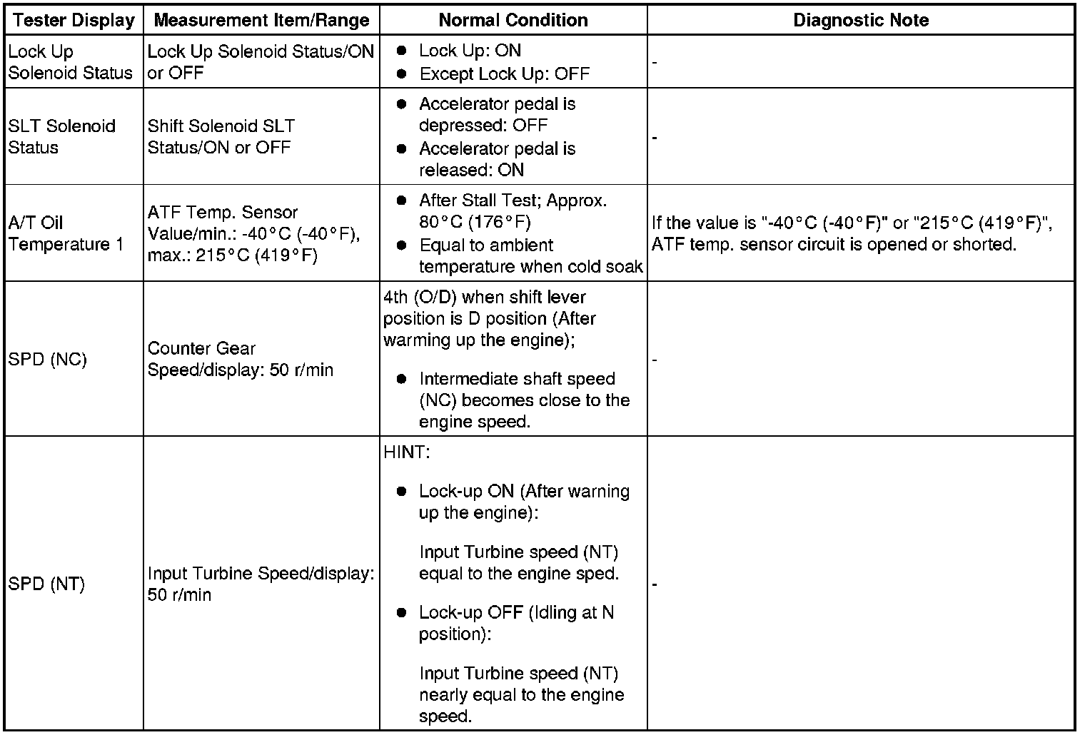 *: "Activate the Solenoid (SLT)" in the Active Test is performed to check the line pressure changes by connecting the SST to the automatic transaxle, which is used in the HYDRAULIC TEST Hydraulic Test as well.