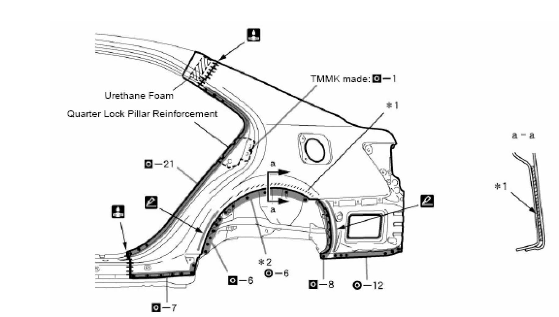 ^ Panel-bonding is a substitution of any specified welds with adhesive material.