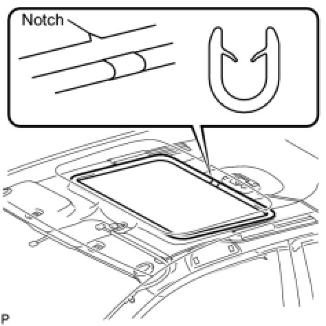 (a) Align the recess of the sun roof opening trim moulding with the notch of the roof headlining and install the sun roof opening trim moulding.