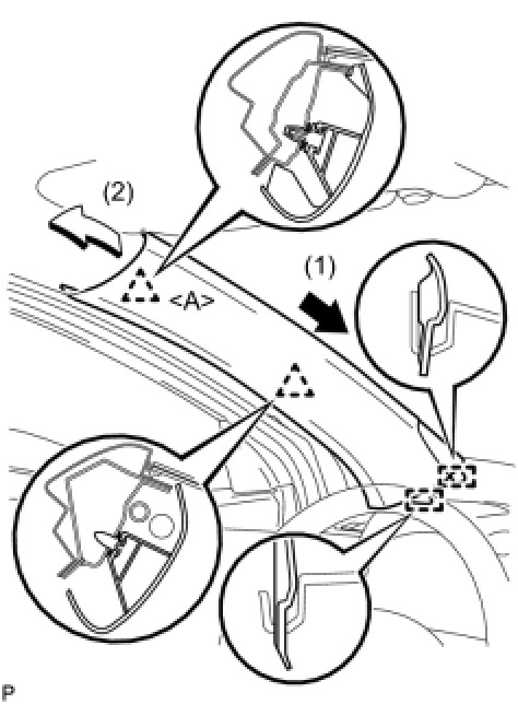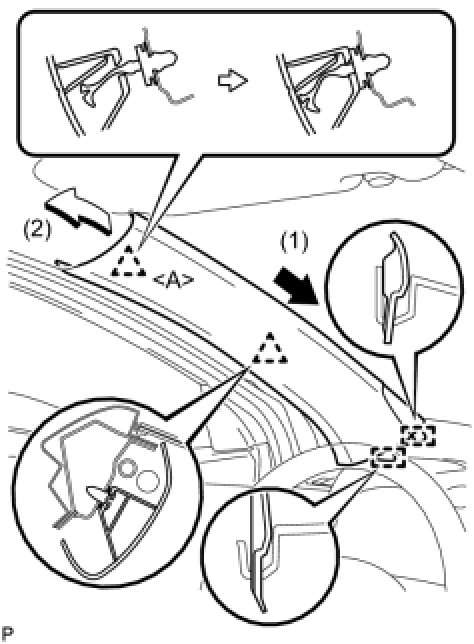 (c) Engage the 2 guides and 2 clips, then install the front pillar garnish RH.
