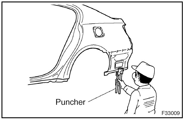 1. For areas where a spot welder cannot be used, use a puncher or drill to make holes for plug welding.