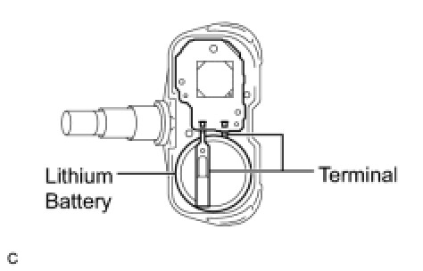 HINT: The tire pressure warning valve and transmitter is powered by a lithium battery. When disposing of the tire pressure warning valve and transmitter, remove the battery and dispose of it correctly.