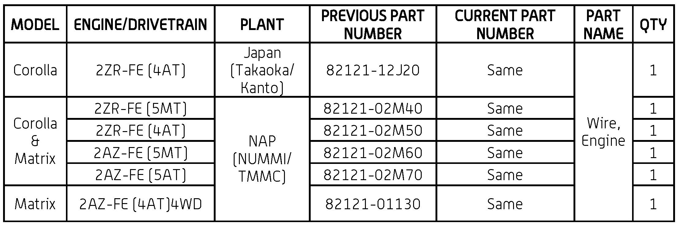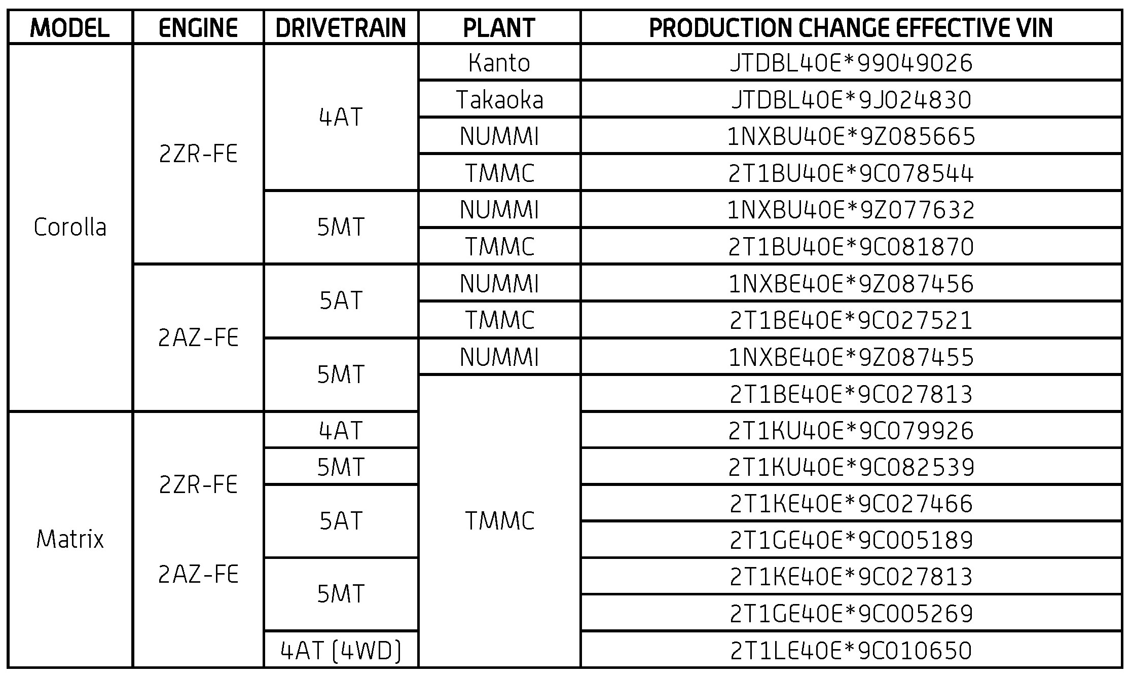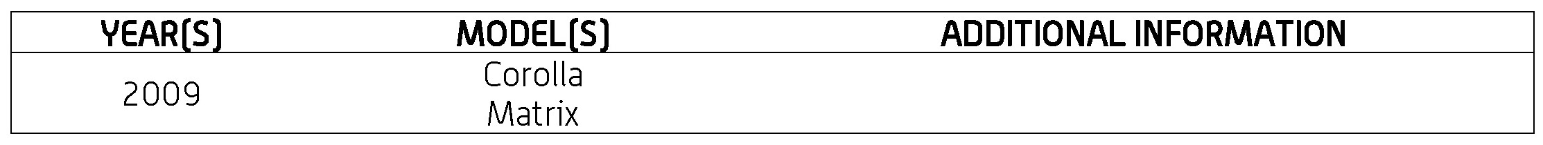 - Model: Corolla/Matrix