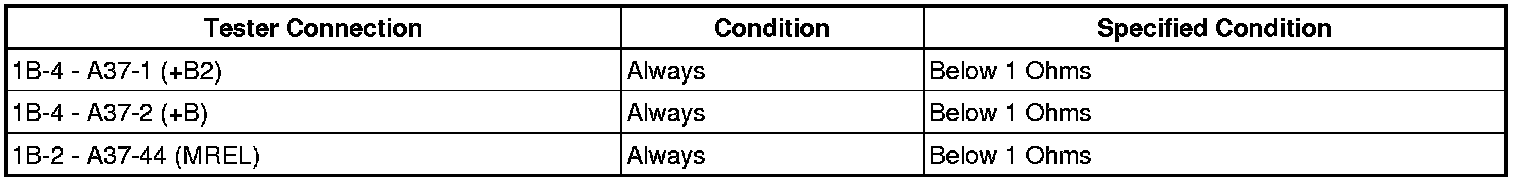 When the ignition switch is turned to the ON, battery voltage is applied to IGSW of the ECM. The output signal from the MREL terminal of the ECM causes a current to flow to the coil, closing the contacts of the integration relay (EFI MAIN relay) and supplying power to either terminal +B and +B2 of the ECM.