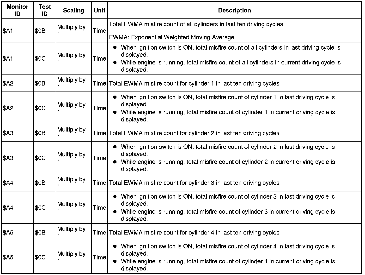 If you use a generic scan tool, multiply the value by the scaling value listed below.