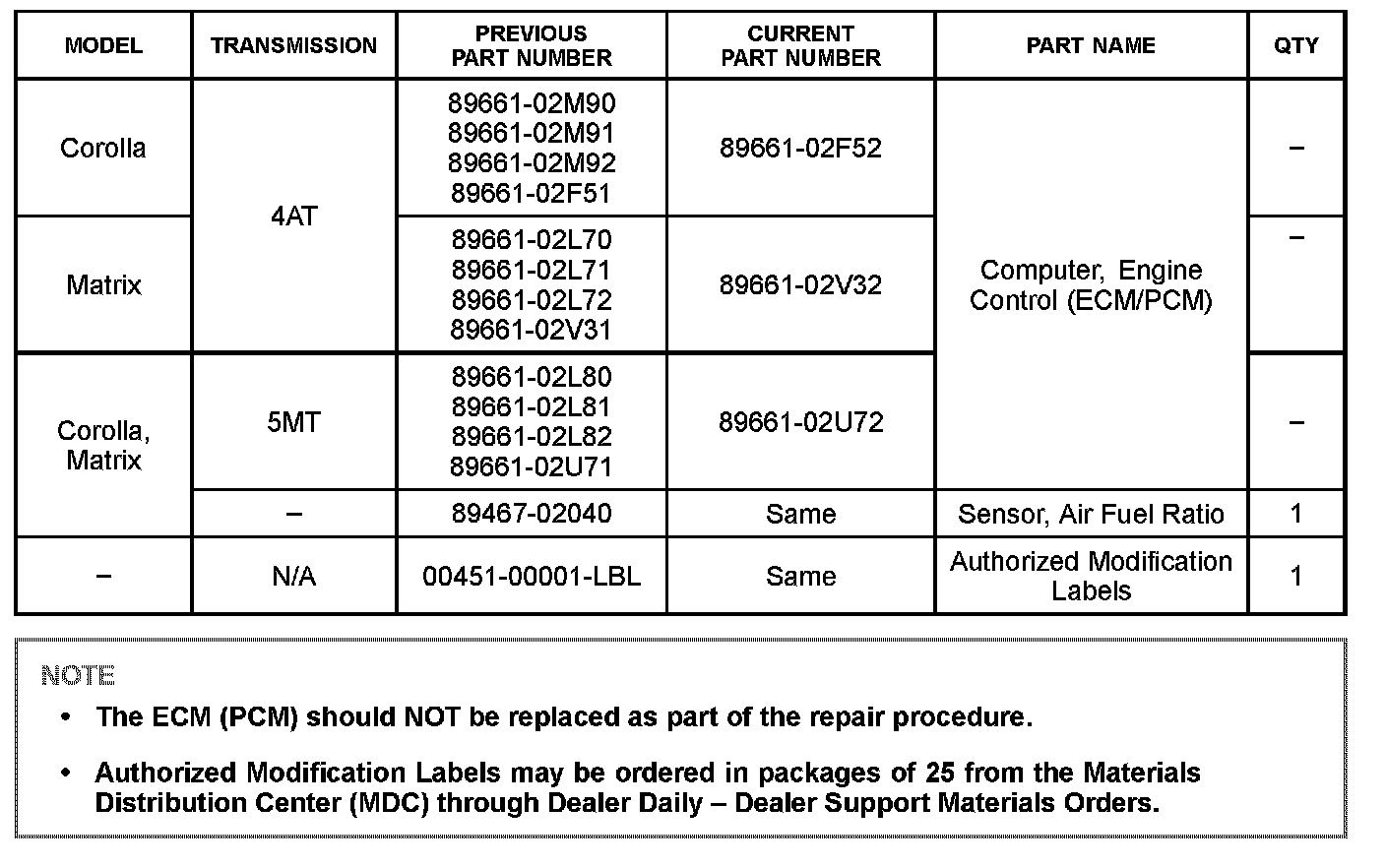 ^ ECM part number [Refer to the Parts Information section for the CURRENT PART NUMBER]